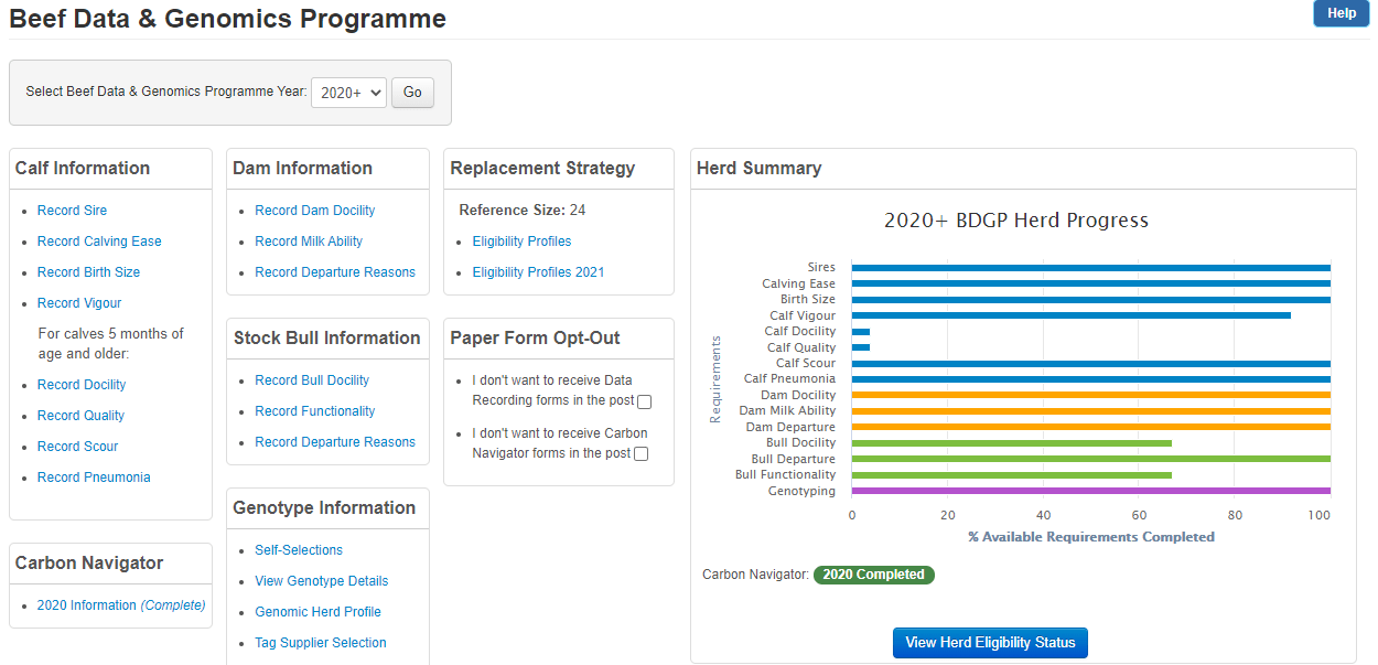 We would remind BDGP farmers that all BDGP data (animal and carbon navigator) can be recorded online via www.dev-icbf.com . Once logged into your ICBF account, go to Services-Beef Data & Genomics Programme.