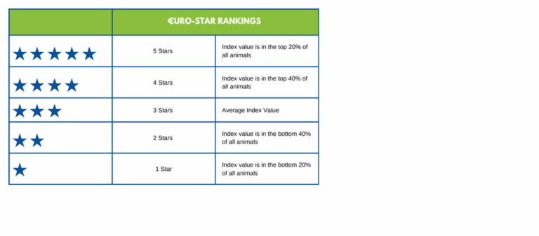 The €uro-star rating system was designed to make it easier for farmers to understand with 1 star animals being in the bottom 20% and 5 star animals being in the top 20%