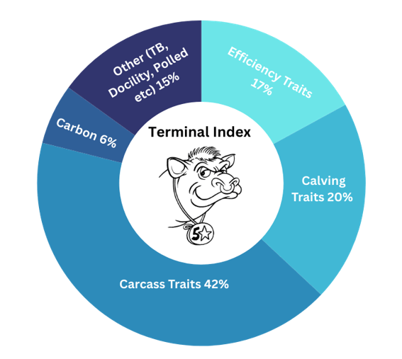 The Terminal Index looks at the beef traits of an animal such as carcass weight and conformation. Farmers wanting to breed animals for finishing or sale as weanlings should focus on the Terminal Index