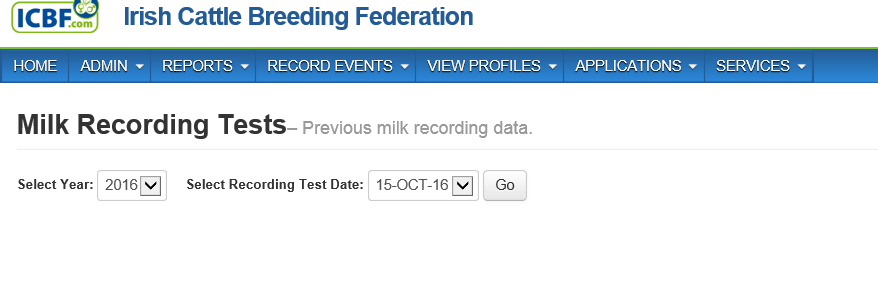 3. Select a year from the drop down menu, and then choose the milk recording test date in that year and click ‘Go’ (see screenshot below).