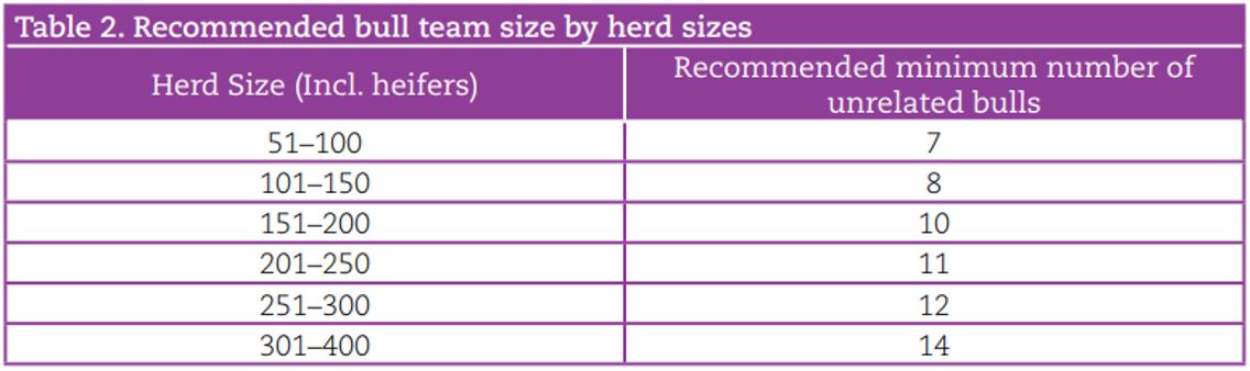 Despite the recent increases in reliability with genomic selection, it is important to acknowledge that the EBI of an individual animal can still change over time as more information accumulates. To minimise the potential risk of using young genomic bulls, a bull team should be used with the minimum team size being dependent on the herd size (Table 2); this achieves a bull team reliability of 95%. For example, in a 100-cow herd, equal usage of eight unrelated genomic sires is recommended to mitigate proof fluctuation. While using daughter proven bulls instead of genomic bulls can reduce risk on an individual bull level, it reduces genetic gain. This was seen when comparing seven high EBI genomic bulls and seven high EBI daughter proven bulls from the 2011 active bull lists with their 2017 EBI. Results showed that, on average, the team of seven genomic bulls were €52 ahead of the daughter proven bull team in 2011 to 2017.