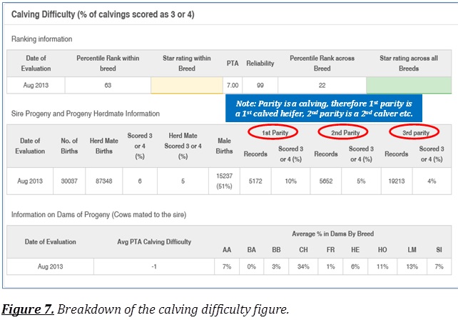 This will then take you to a screen which gives a full breakdown of the calving records of a bull (See figure 7).