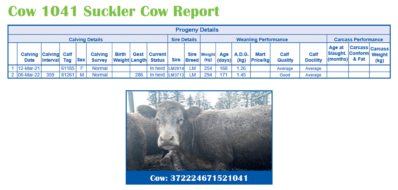 Alongside Gene Ireland, the herd are also active participants in HerdPlus, BDGP and BEEP-S. One of the standout cows in the herd is 372224671521041. Sired by the Gene Ireland tested Kickhams Handsome (SI4322), she was born in March 2019. This cow first calved at 24 months and has produced a calf each year with a lifetime average calving interval of just 359 days. Her 2022 born calf was a bull sired by the Gene Ireland bull Nebbiolo (LM3713). This calf was weighed for the BEEP-S scheme and was 294 kgs at 171 days. This calculates into a most impressive 1.45 kgs per day. The cow herself currently has a Replacement Index of €177 and weighed 665 kgs in August 2022. She is 5 stars across breed for Milk and Carcass Weight and is another example of what can be achieved in the suckler beef industry through a combination of genetics and top-class management.
