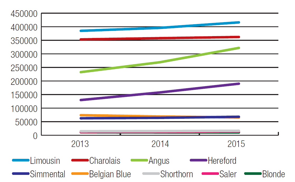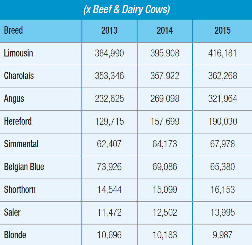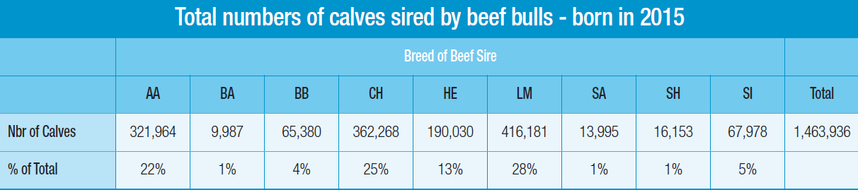 Limousin, Charolais & Angus account for 75% of the beef sired calves born in 2015.