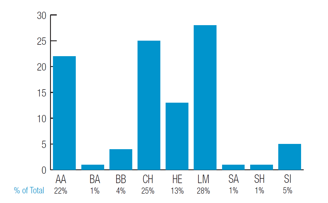 - 97% of all beef sired calves born in Ireland come from 6 breeds: Charolais, Limousin, Angus, Hereford, Belgian Blue & Simmental (Graph 14).