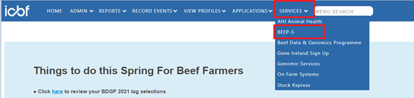 BEEP-S 2022 details can be accessed through your ICBF account by going to > Services > BEEP-S. Similarly Dairy Beef Calf screens can be accessed by going to > Services > Dairy Beef Calf Programme.