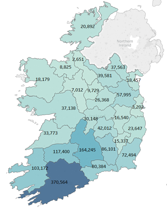 Unsurprisingly county Cork is leading the way with a total of 370,564 dairy cows. This figure is over 200,000 higher than the dairy cow population in county Tipperary which is the second most highly populated county with a figure of 164,245. The third most highly populated county for dairy cows is county Limerick with a figure of 117,400 dairy cows. Limerick is followed closely by county Kerry which has a figure of 103,172 dairy cows. The least most populated county for dairy cows is county Leitrim with a population of just 2,651 dairy cows. The second least populated county is county Dublin with a population of 3,202 dairy cows. County Roscommon completes the bottom 3 counties for dairy cow population with a figure of 7,012 dairy cows.