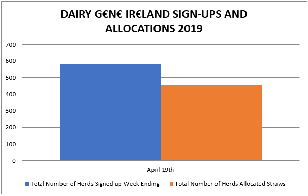 There are over 580 herds signed-up to the Dairy Gene Ireland Programme taking a total of 21,465 straws to date. There are still a limited number of Dairy Gene Ireland straws available to order.