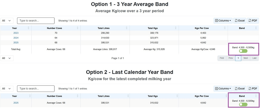 Dairy farmers will have the choice of 3 options to determine their cow band for 2026;