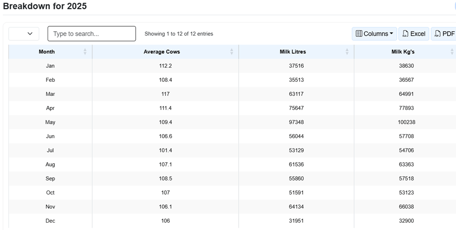 Option 2: Select the previous year for milk supply (2025)