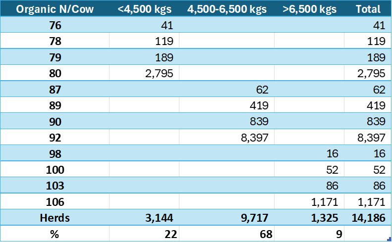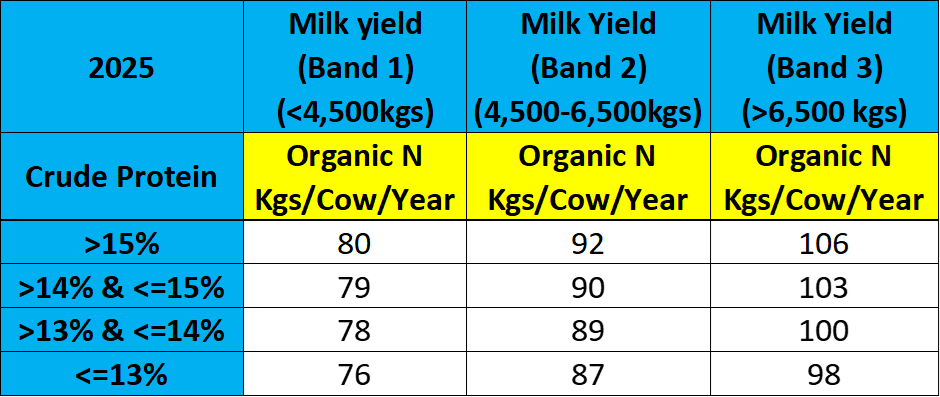 - Farmers must retain feed invoices, as DAFM may request them to verify concentrates fed; this affects the organic N/cow value (see table below).