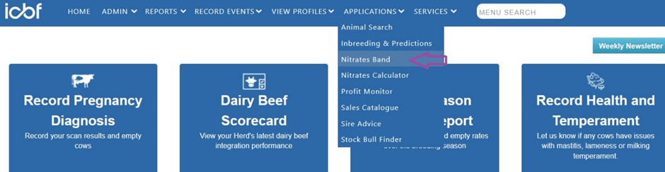 Once logged in, simply go to ‘Applications’ and select ‘Nitrates Band’ from the drop-down menu.