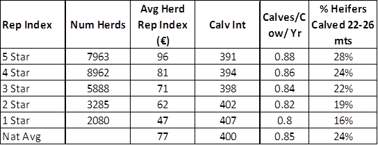 Recent analysis of the fertility performance of the national suckler herd shows that 5 star Replacement Index cows are delivering the best fertility performance for Irish suckler farmers (table 1).