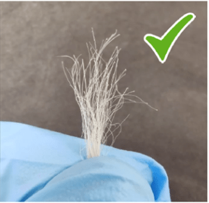 Figure (1) is example of an ideal hair sample for genomic testing. The hairs are clean and dry and there are very clear bulb shaped roots.