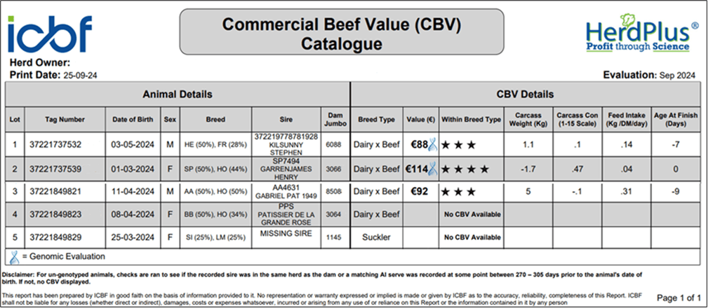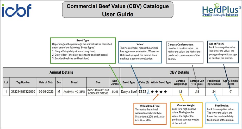 The new Commercial Beef Value (CBV) Catalogue is now available for eligible animals and is accessible to all HerdPlus members. Farmers who want to sell animals directly off farm can generate this catalogue to give potential buyers an insight into the genetic value of the animal destined for beef production.