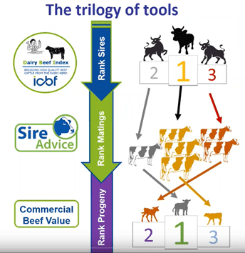 We would like to sincerely thank Donagh Berry for his work on this collaborative project and we would like to acknowledge the following video that he has kindly put together explaining in detail, how the new dairy beef mating’s are generated in the Sire Advice program.
