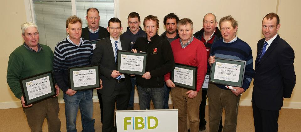 The top data recording winners pictured above include; Micheal J. Reidy, David Kerr, Bill O’Keefe, Richard Cronin, Eamon Kenny, Patrick Troy, James Tallon, Sylvester Phelan and William Downey. Also included in the picture is Kevin Whittle (FBD Trust) and Séan Coughlan (CEO ICBF)