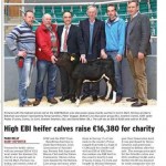 Pictured with the high EBI heifer calves sold at the ICBF / Bottom Line discussion Group Charity Auction in Corrin Mart, Fermoy are members of the four benefiting charities with Andrew Cromie, ICBF and members of the Bottom Line Discussion Group.