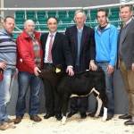 Pictured with the highest priced calf at the ICBF / Bottom Line discussion Group Charity Auction in Corrin Mart, Fermoy are Barry Bateman & Graham Swanton, Forge Genetics, ( Purchaser), Peter Duggan & David Baker, Bottom Line Discussion Group, Andrew Cromie, ICBF and seller Paddy O’ Leary, Conna, Co. Cork. The calf has an EBI of 265 and sold for €1500.