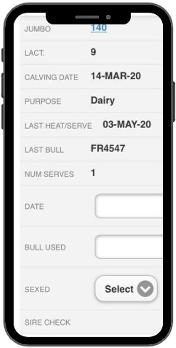For herds participating in DIY AI and avail of the HerdPlus Dairy Sire Advice application, it is possible to record serves in one simple click.